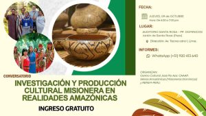 Conversatorio “INVESTIGACIÓN Y PRODUCCIÓN CULTURAL MISIONERA EN REALIDADES AMAZÓNICAS”. Jueves, 02 Octubre 4 pm. Ingreso libre